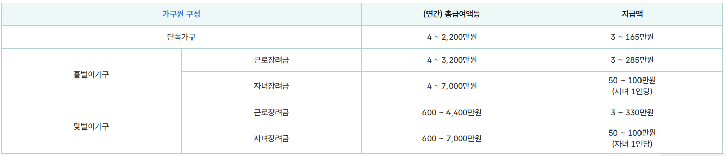 | 가구 유형 | 총소득 기준 |