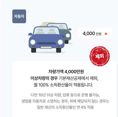 - 재산의 월 소득환산액: 부동산, 금융자산, 자동차 등의 재산을 일정한 비율로 환산하여 계산