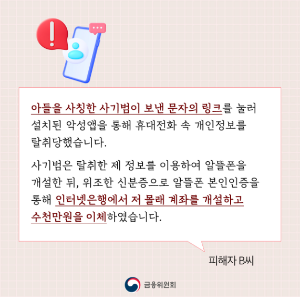 문자메시지나 이메일로 받은 링크는 클릭하지 말고, 반드시 공식 웹사이트나 앱스토어를 통해 직접 접속하세요.