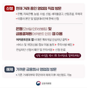 - 본인 의사에 따라 자유롭게 설정 변경 가능 - 필요할 때 일시 해제 후 계좌 개설, 이후 재차 단 가능