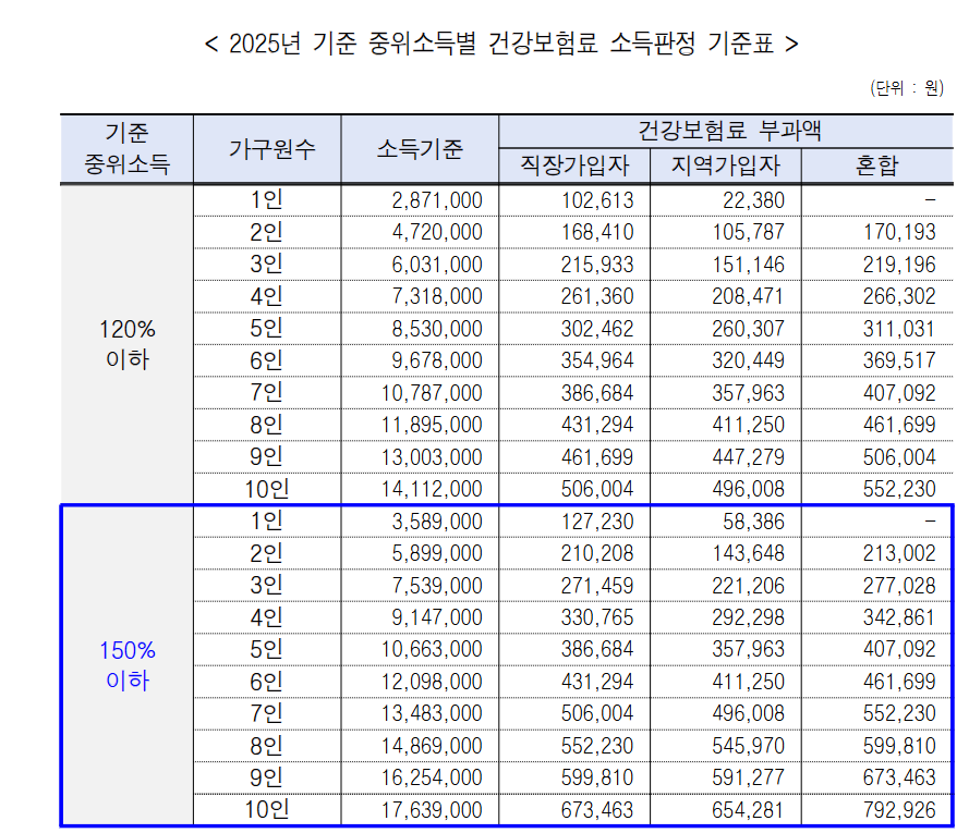 (직장가입자: 127,230원 이하 / 지역가입자: 58,386원 이하)