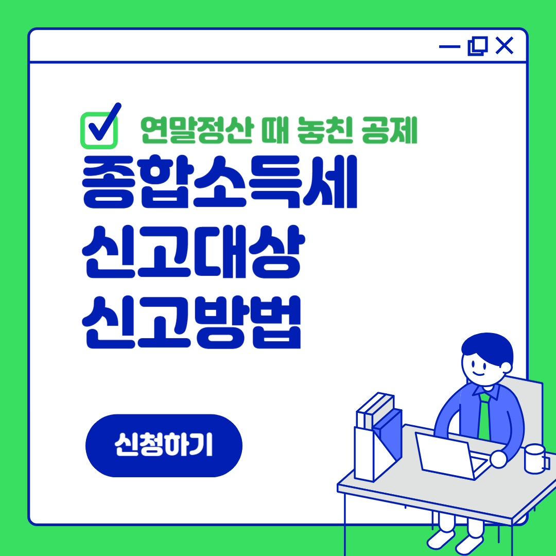 종합소득세는 매년 5월 1일부터 5월 31일까지 신고해야 하며, 기한을 넘길 경우 가산세가 부과될 수 있습니다.