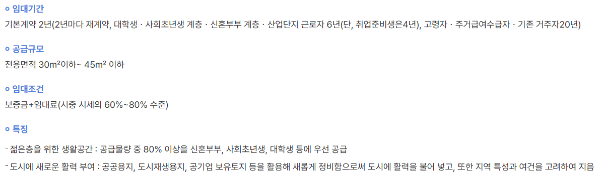 - 저렴한 임대료 : 시세 대비 60~80% 수준으로 거주 부담이 감소됩니다.