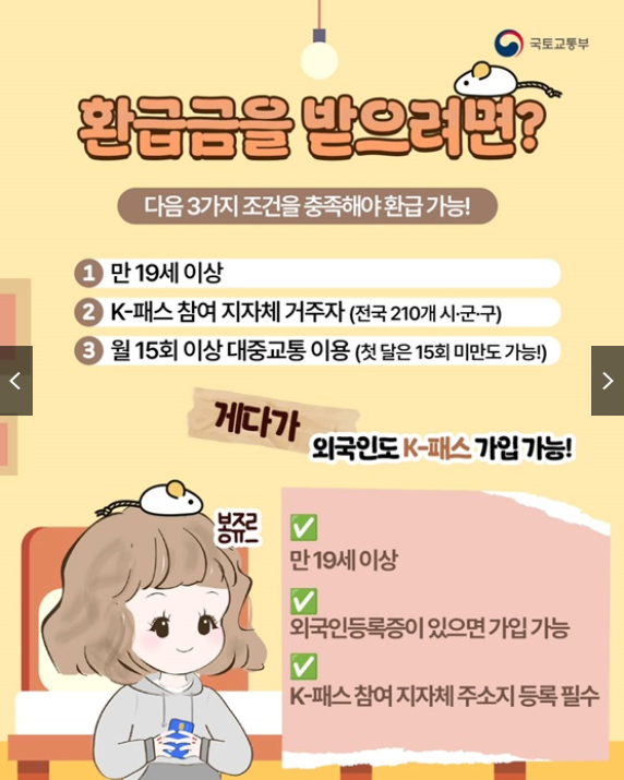 이번 포스팅에서는 K-패스의 환급금 지급 방식과 일정, 조건 등을 자세히 알아보겠습니다.
